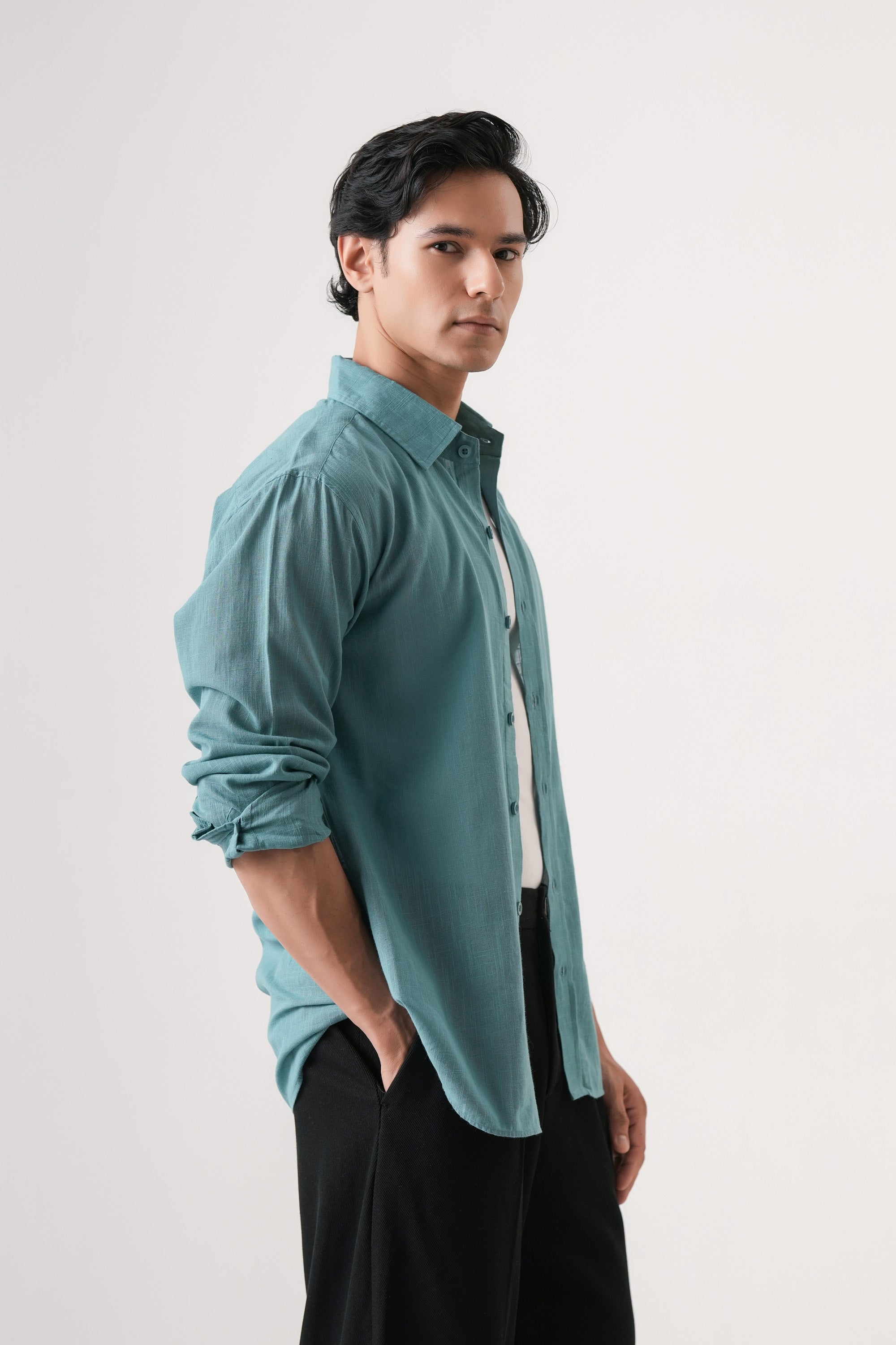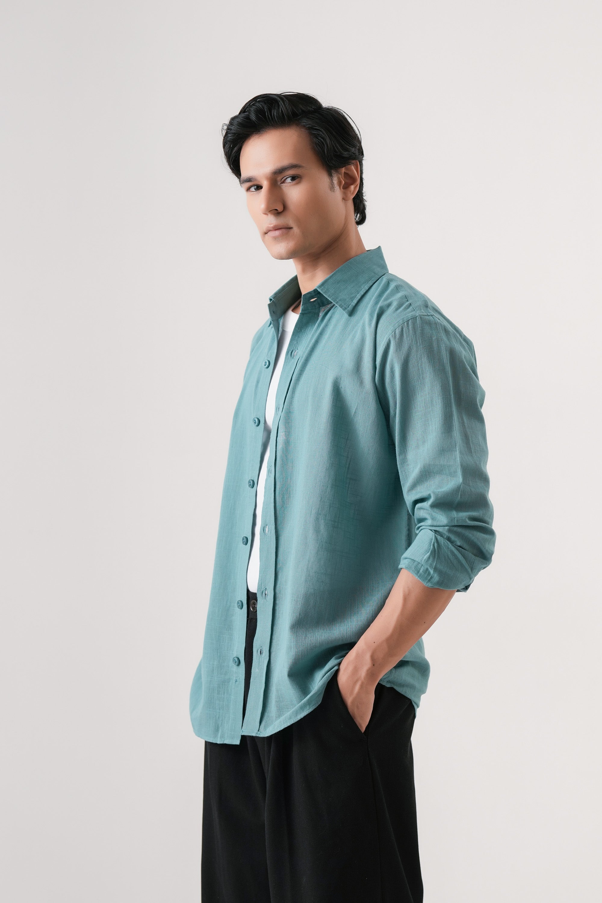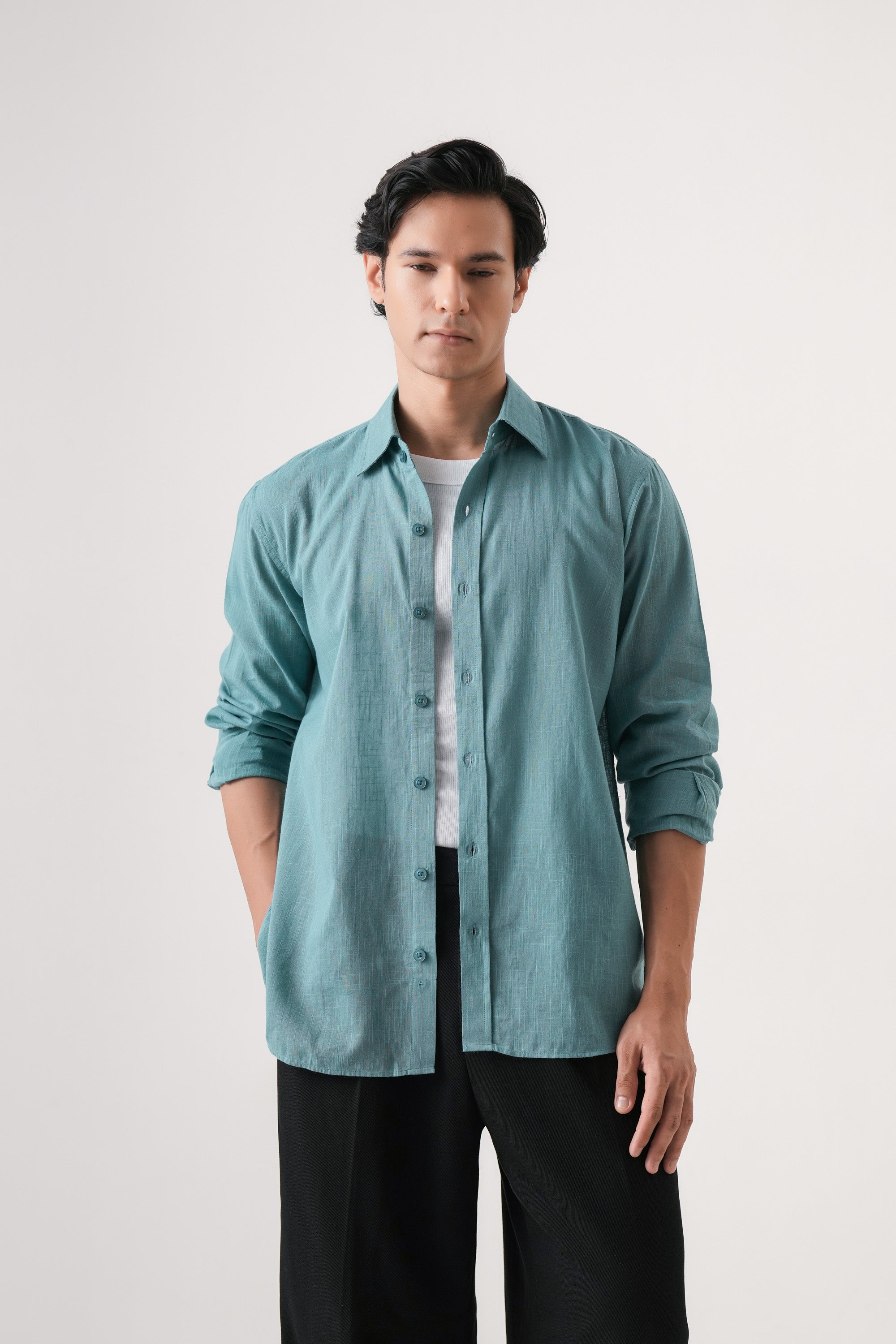 Crafted from soft, breathable cotton, the Azure Haze Essential shirt offers exceptional comfort for everyday wear. Its solid blue hue provides a versatile, timeless look suitable for casual settings. Designed to combine style with ease, this shirt ensures a relaxed fit that moves with you throughout the day. Ideal for those seeking a dependable wardrobe staple with expert quality and enduring comfort.