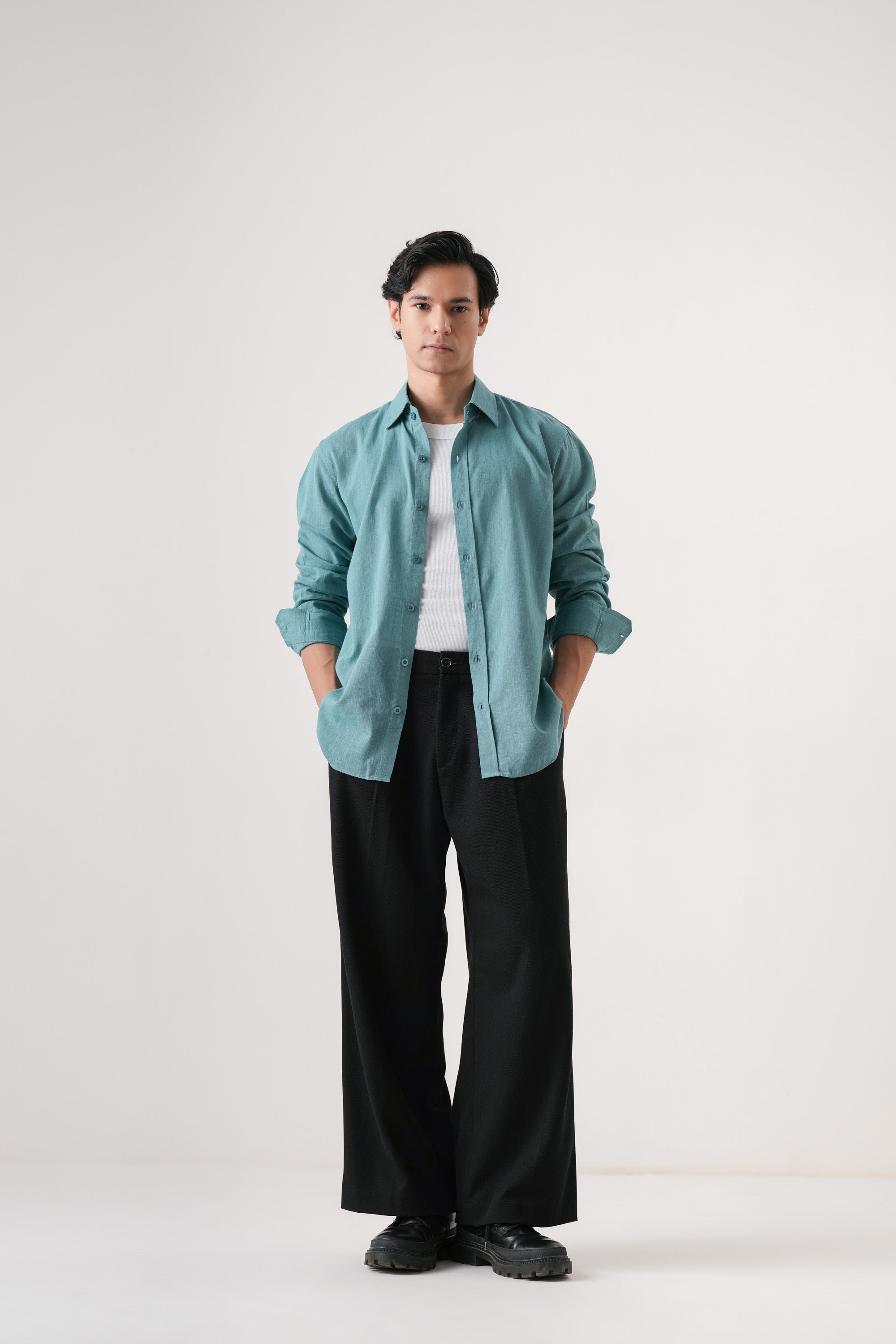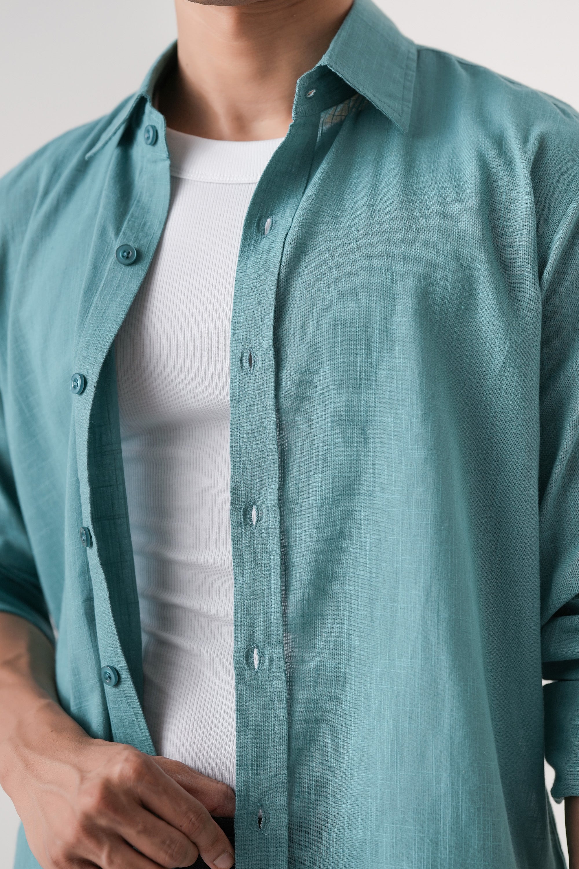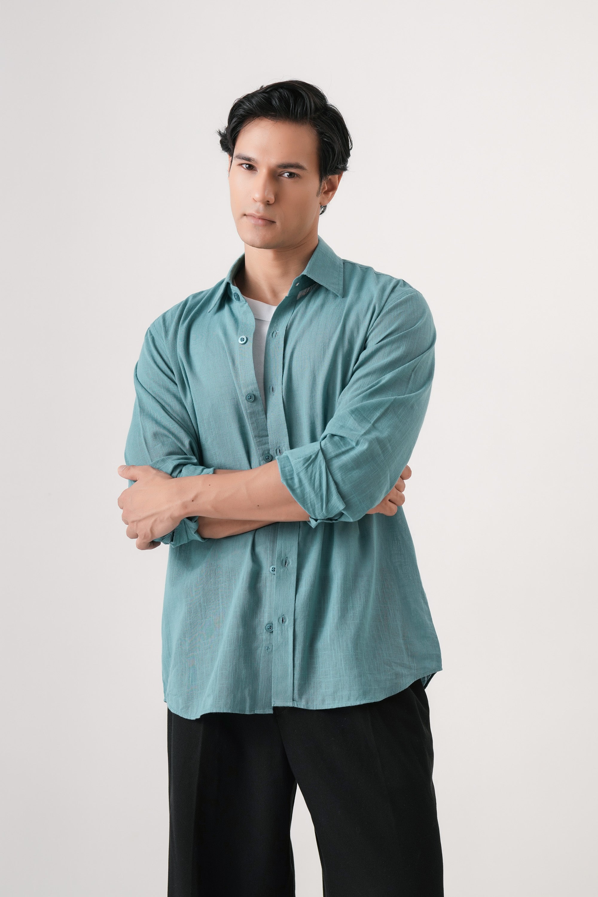 Crafted from soft, breathable cotton, the Azure Haze Essential shirt offers exceptional comfort for everyday wear. Its solid blue hue provides a versatile, timeless look suitable for casual settings. Designed to combine style with ease, this shirt ensures a relaxed fit that moves with you throughout the day. Ideal for those seeking a dependable wardrobe staple with expert quality and enduring comfort.
