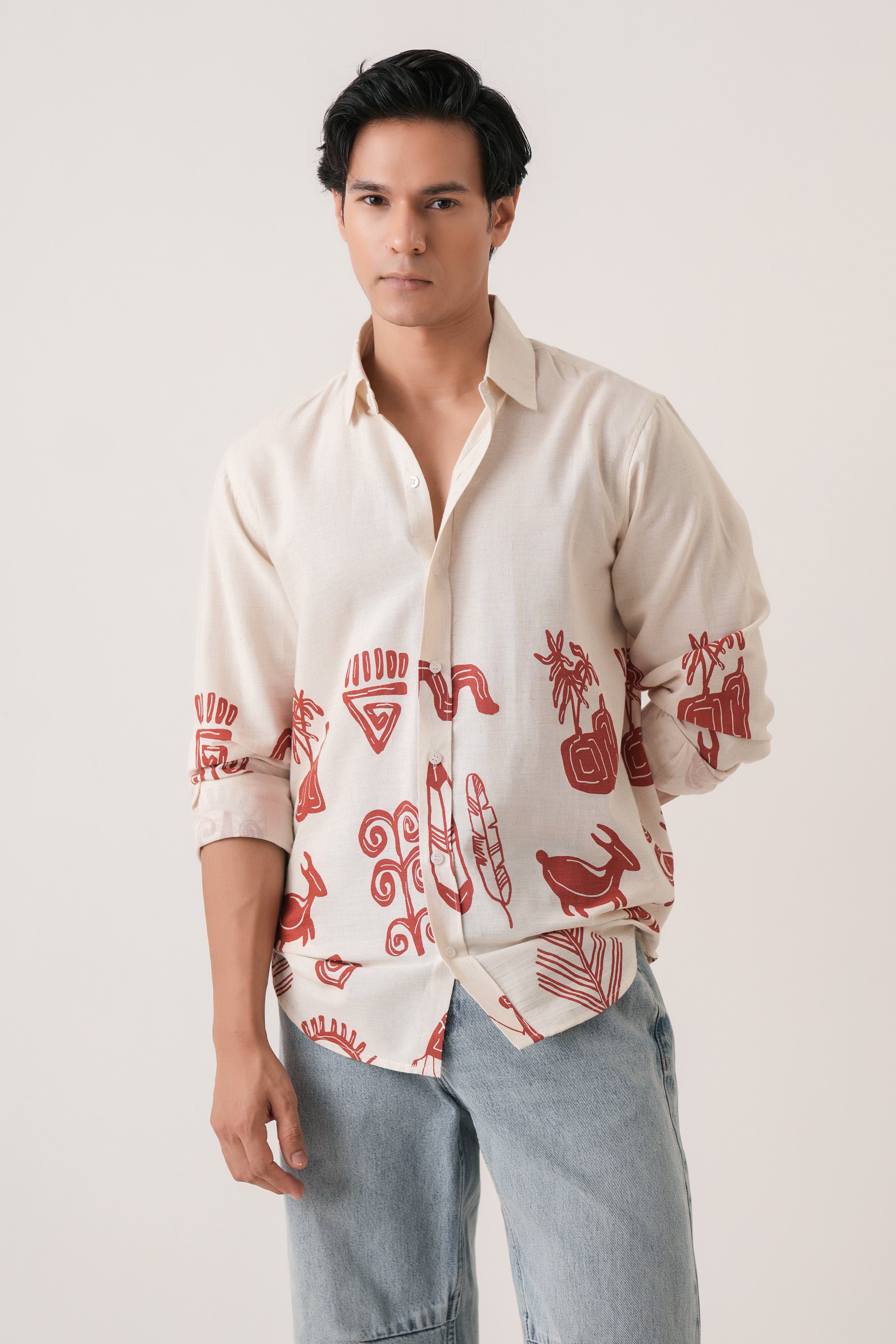 Crafted from breathable cotton with a flexible fit, this Natural & Red Tribal Animal Shirt combines comfort with distinctive tribal-inspired animal motifs. Its natural and red hues offer a unique aesthetic, making it ideal for those seeking both style and ease in everyday wear. Perfect for casual outings or cultural events, this shirt delivers durability and a refined look.